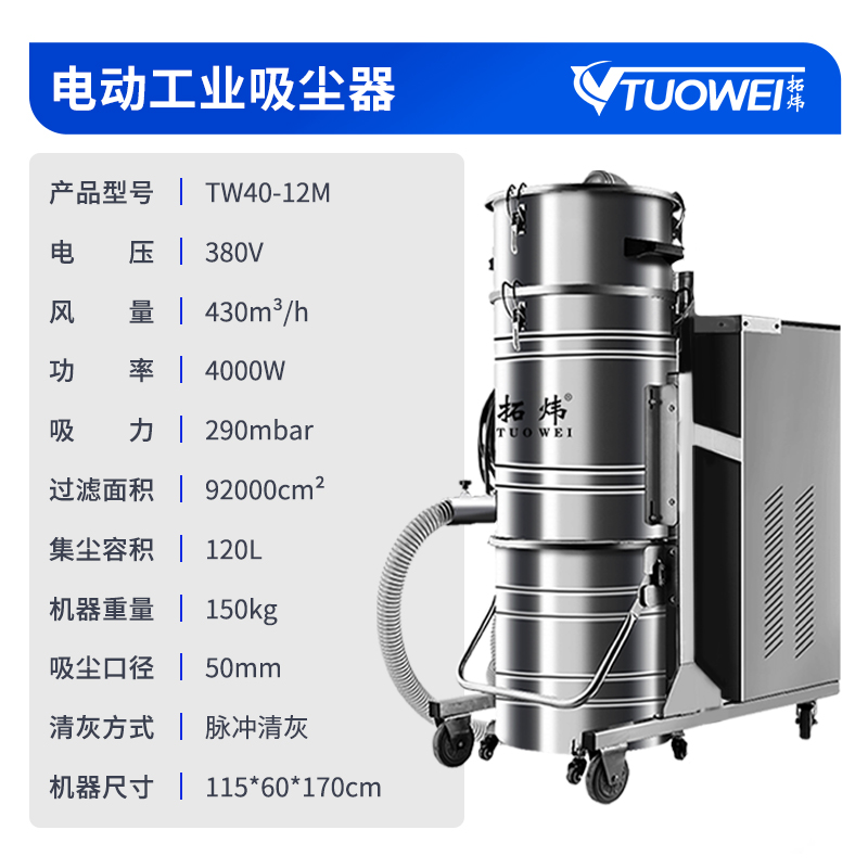 品牌:拓炜适用范围:本系列产品属于电动工业吸尘器,适用于长时间连续作业,加装全自动脉冲自动清灰系统,防止过滤器堵塞,延长机器使用寿命。可用于工业生产过程中粉尘、颗粒物、杂质的收集与清洁,也可与工业生产设备配套使用。广泛用于打磨配套、五金机械、汽车、喷涂、航空高铁、电子、食品医药、石油化工等行业。...
